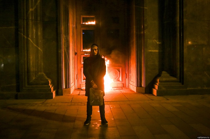Doch an Woina, Pussy Riot und jetzt auch Pawlenski kommt man nicht einfach so vorbei und das sicher nicht, weil hinter der brennenden Tür ein imaginierter FSB-Wachmann hätte versteckt sein können (auf den Klageruf dieses Wachmanns, er hätte verbrennen können, baute die Hauptargumentationslinie der Pawlenski-Kritiker in den sozialen Netzwerken – fast wörtlich wie in dem Märchen von der dummen Else, die bittere Tränen vergoss, als sie sich vorstellte, wie sie einmal heiraten würde, einen Sohn gebären, wie dieser dann heranwachsen, in den Keller steigen und sich dabei das Genick brechen würde). Der Erfolg dieser Künstler besteht in der richtigen Synthese aus einem gesellschaftlich emotionsgeladenen Thema und der Art seiner Darbietung, aber als entscheidenden Faktor (und falls das ein alter Hut ist, sollen die Kunsthistoriker hier intervenieren) betrachte ich eine dritte Komponente ihrer Aktionen. Herkömmliche Vertreter der zeitgenössischen Kunst brechen Tabus, sie brechen mit Moralvorstellungen und einigem mehr, aber unsere Aktionskünstler dringen in einen Bereich ein, der weder durch Moral noch durch kollektiv empfundene Grenzen des Akzeptablen geschützt ist, sondern durch Angst. Die Angst – sie ist die dritte Komponente, ohne die die neue russische Kunst schlicht nicht existieren würde.