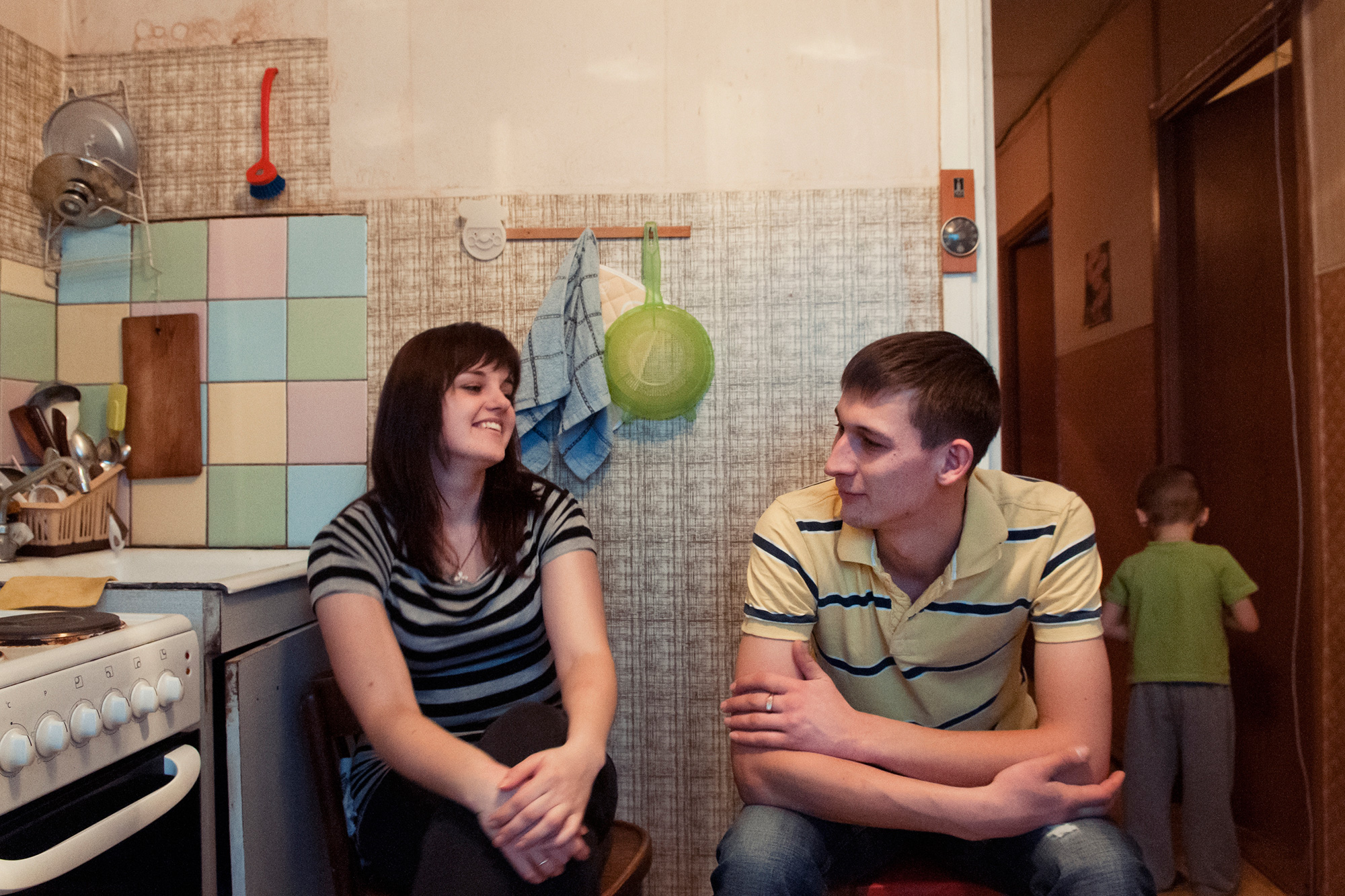 Julia und Edik sind in Horliwka in der Ost-Ukraine geboren. Julias Familie kommt aus Orenburg in Russland und aus Tscherkassy in der Ukraine. Ediks Eltern kommen aus Lipezk in Russland und dem Gebiet Donezk in der Ost-Ukraine. Heute sind Julia und Edik Flüchtlinge aus der Ost-Ukraine und leben mit ihrem vierjährigen Sohn Dima in Moskau.