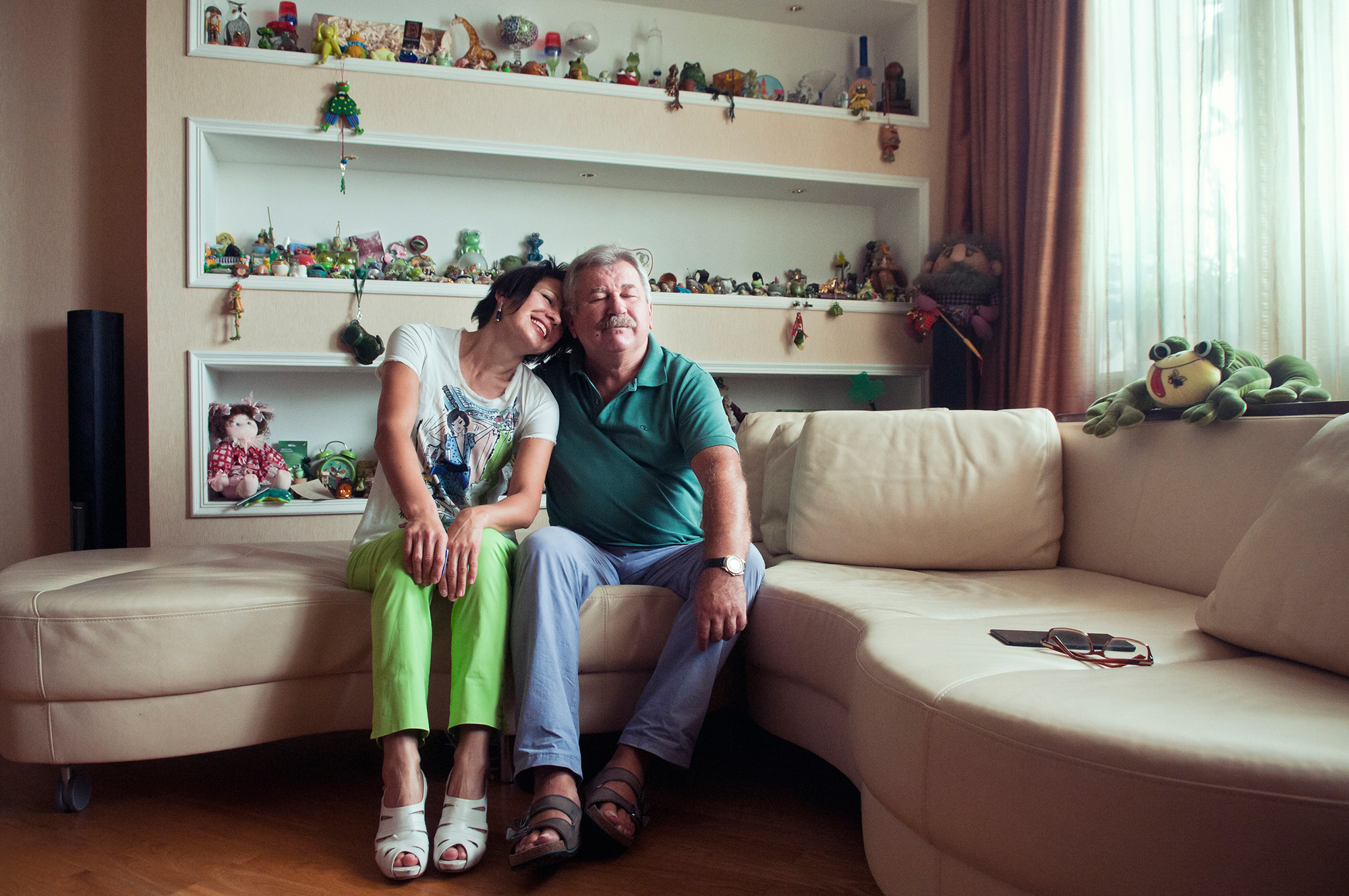 Alexej ist Ukrainer, geboren in Odessa. Olga ist Russin. Ihre Liebesgeschichte begann drei Jahre bevor dieses Foto entstand. Olga machte damals Urlaub in Odessa und suchte einen Fotografen, der Bewerbungsfotos von ihr machen könnte. Alexej war der passende Mann. Mittlerweile lebt das Paar zusammen mit Töchterchen Lisa in der Nähe von Moskau.