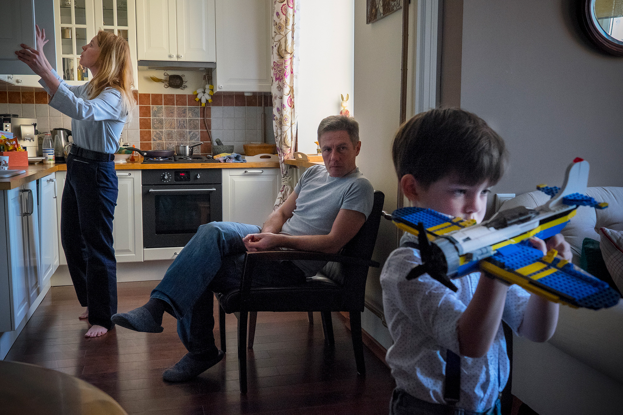 Wladimir ist in Moskau geboren, Jewgenija ist aus Charkiw. Sie haben sich kennengelernt, als sie beide ihre Großmutter in einem Dorf im Gebiet Kursk besucht haben. Nach drei Jahren Fernbeziehung zog Jewgenija nach Moskau. Dort leben sie jetzt zusammen mit Töchterchen Arischa.