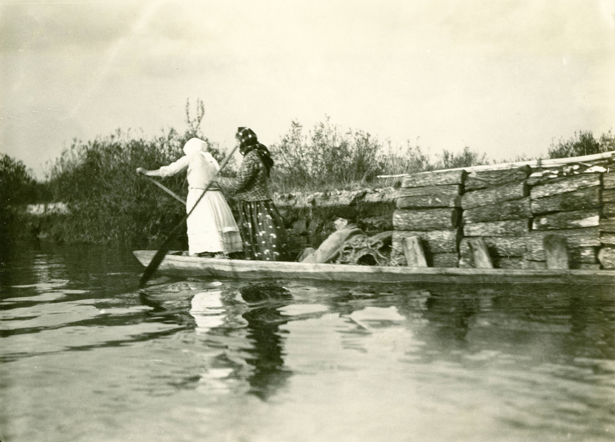 Es sind Bilder von Szenen und Menschen, die aus der Zeit gefallen scheinen. Pferdekarren, hölzerne Kanus als Transportmittel, unbefestigte Straßen, Frauen, die Flachs schlagen. Vielleicht stellte sich auch bei Louise Arner Boyd (1887–1972) dieser Eindruck ein, als die berühmte Forscherin 1934 das südliche Belarus mit seinen wilden Sümpfen und Wasserwegen bereiste. Schließlich kam sie aus den damals vergleichsweise hochmodernen USA in diese archaisch wirkende Region, die in Belarus von einem nahezu mystischen Faszinosum umweht ist und der der Schriftsteller Iwan Melesh (1921–1976) mit seinem Epos Menschen im Sumpf (1962) ein literarisches Denkmal setzte.
