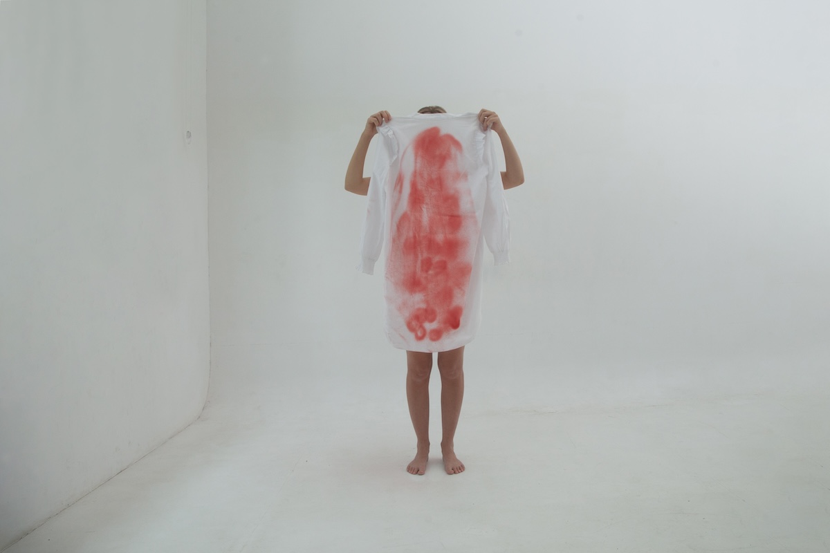 Die Binde, die ich eingelegt hatte, trug ich schon länger als 24 Stunden. Als sie nutzlos geworden war, musste ich mich entscheiden: Entweder ich zerreiße mein T-Shirt und habe ein paar Stoffeinlagen, friere dann aber in der Bluse (in der Zelle war es kalt), oder ich laufe aus. Ich zerriss das T-Shirt. Meine Zellengenossinnen begriffen, was ich vorhatte, und halfen mir, es in Lappen zu zerteilen. Ich erinnere mich an dieses Gefühl der Ohnmacht, als ich mein weißes Lieblings-T-Shirt zerriss, die Luke in der Tür sich öffnete und ein grinsender Mitarbeiter sagte: „Was machst du denn da?“