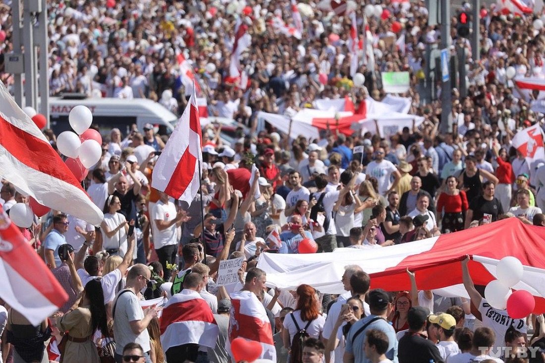 Seitdem wird die weiß-rot-weiße Flagge von der Opposition verwendet, zunächst aus der national-patriotischen Richtung, mit der Zeit jedoch von allen, die sich gegen Lukaschenko positionieren. Nach der Wahl 2020 ist die Opposition auf dem Höhepunkt ihrer Beliebtheit seit dem Amtsantritt von Lukaschenko. Daher ist es kein Wunder, dass die Flagge zum Symbol des Protests wurde. Interessanterweise sieht man – anders als bei den beiden ukrainischen Maidanprotesten oder den Protesten nach der belarussischen Präsidentschaftswahl 2010 – in diesen Tagen neben den weiß-rot-weißen Flaggen keine EU-Fahnen.