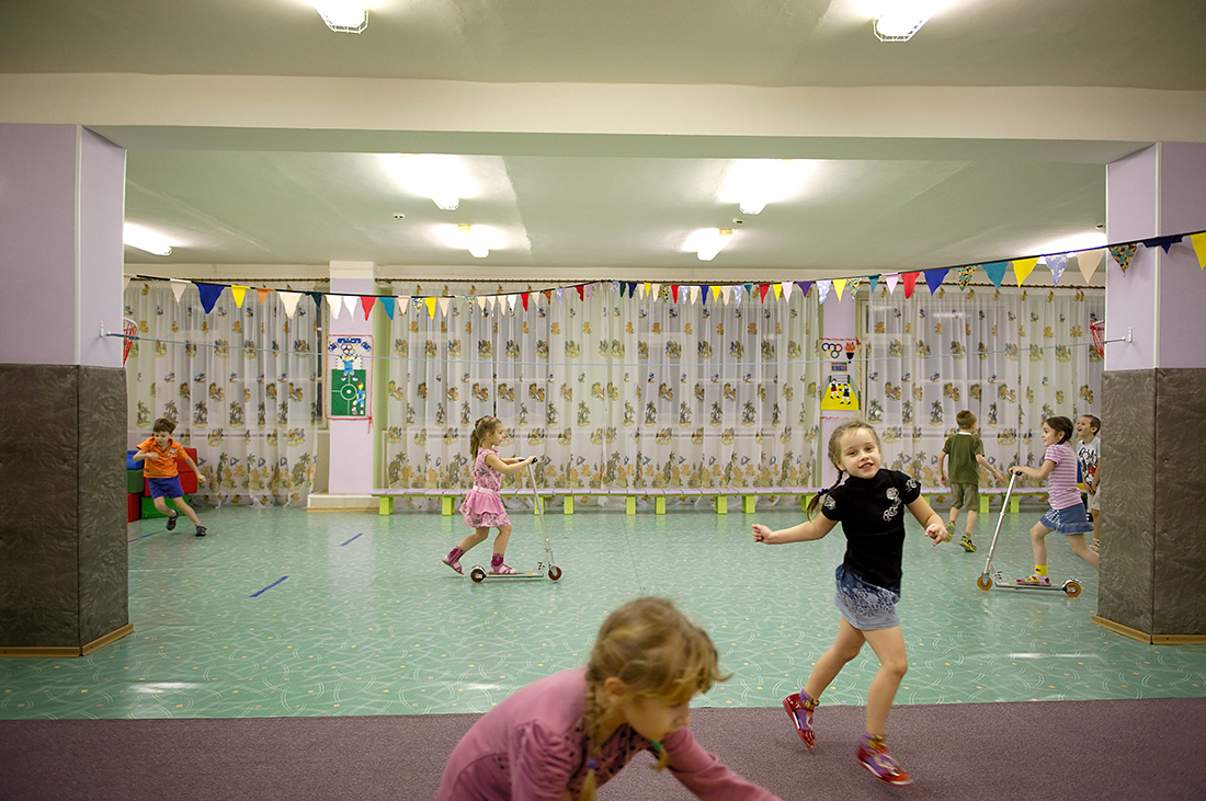 Je nach Witterung müssen kleinere Kinder manchmal mehrere Monate am Stück in geschlossenen Räumen verbringen. Die Kindergärten haben daher spezielle Räume eingerichtet, die sich für Laufspiele, Radfahren oder andere Outdoor-Aktivitäten eignen.