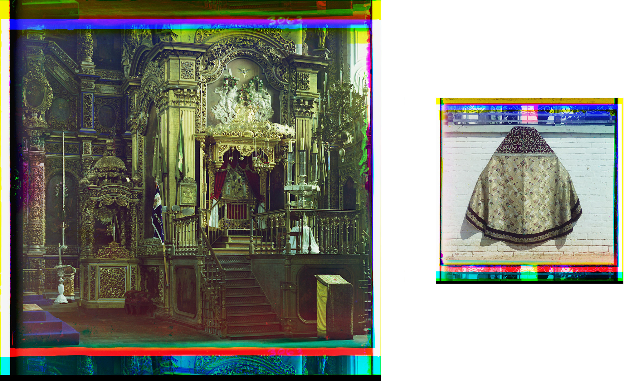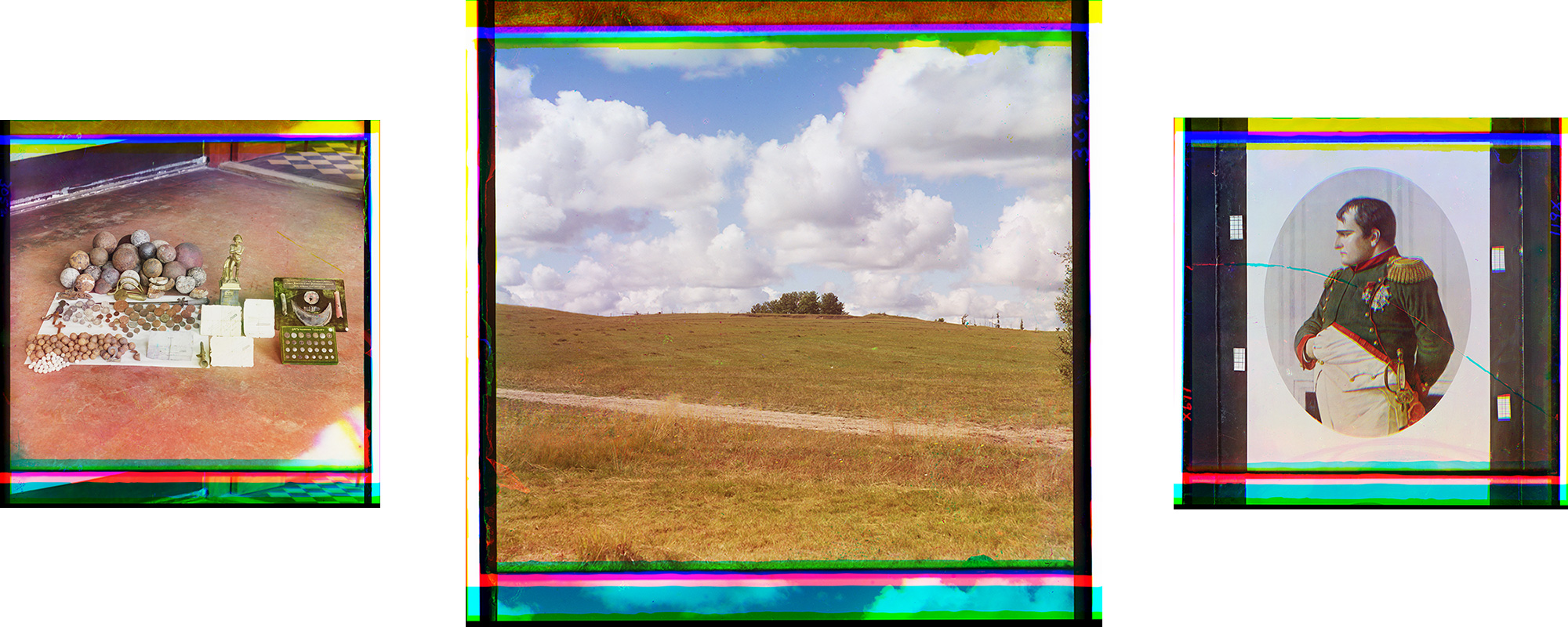 Die von Adolf Miethe entwickelte Technik, die Prokudin-Gorski verwandte, beruhte auf dem Prinzip dreier verschiedenfarbiger Filterscheiben (rot, grün und blau), die vor drei vertikal übereinander angeordneten Glasplatten-Negativen angebracht waren. Auf diese Weise konnte nur jeweils das entsprechende Teilspektrum des Lichts auf die einzelne Glasplatte einwirken. Während der Aufnahme wurden die Platten eine nach der anderen belichtet.