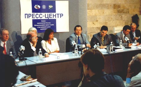 Doch er ist nicht vom Himmel gefallen. Lyndon LaRouche ist kein persönlicher und langjähriger Freund von irgendjemandem, sondern vom Präsidentenberater zu Fragen der Wirtschaftsintegration Sergej Glasjew. Hier sehen wir LaRouche und Glasjew im Jahr 2001 auf einer gemeinsamen Pressekonferenz: