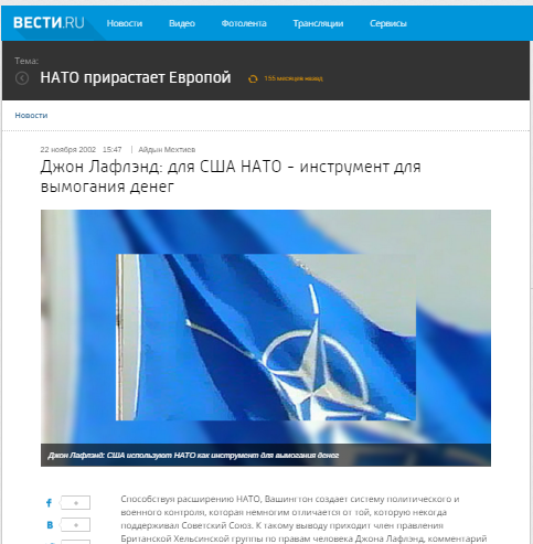 Wie ihr seht, fallen diese „Experten“ und „Analytiker“ wirklich nicht vom Himmel und werden nicht auf Initiative irgendwelcher Nachrichtenredakteure ins russische Fernsehen geholt, sondern von ihren Freunden an der Spitze der russischen Macht. Dugin, Glasjew und die Partei Rodina unterhalten enge Verbindungen zu europäischen und amerikanischen Ultrarechten, Neonazis und sonstigen Obskuranten, die man als im Westen einflussreiche Politikwissenschaftler und Journalisten ins Fernsehen schleift – die sie aber natürlich nicht sind. Und die sich deshalb freuen wie die Schneekönige, wenn sie, zwar nicht im eigenen Land, aber in Russland, ins echte Fernsehen dürfen und als wichtige Leute vorgestellt werden. Die Partei Rodina, der Sergej Glasjew angehört, ist ebenfalls ein Großlieferant für unterschiedlichste handgemachte TV-„Experten“. Einer davon ist zum Beispiel John Laughland, der immer wieder in der Nachrichtensendung Westi zitiert wird. Mindestens schon seit 2002: