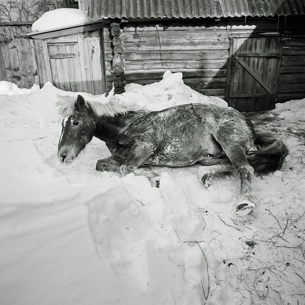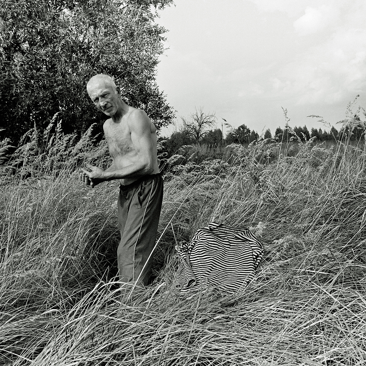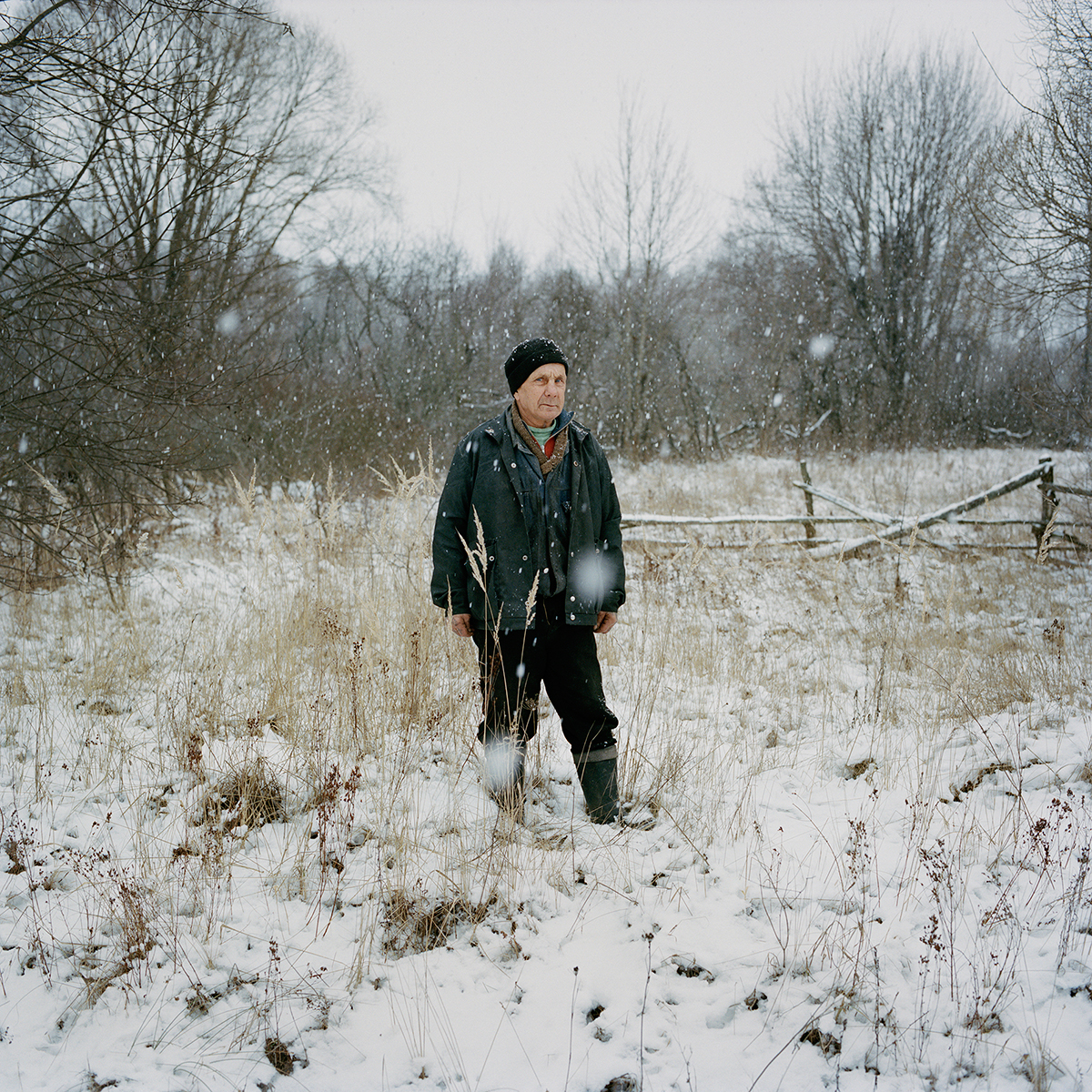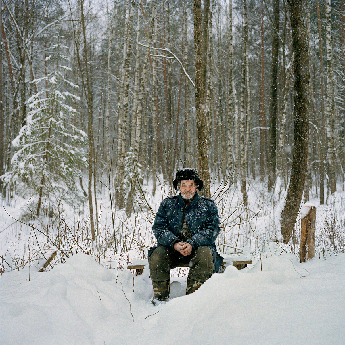 Oblast Gomel, Januar 2016: „Walera lebt allein mit nur einem Nachbarn in einem Dorf. Er gibt zu, dass seine Trinkgewohnheiten sein Untergang sein werden. Weil er schon vor langer Zeit aufgehört hat, dafür zu bezahlen, ist sein Haus ohne Strom. Im Januar 2016 posiert er für mich in seinem Garten.“ / Foto © Svetlana Yerkovich
