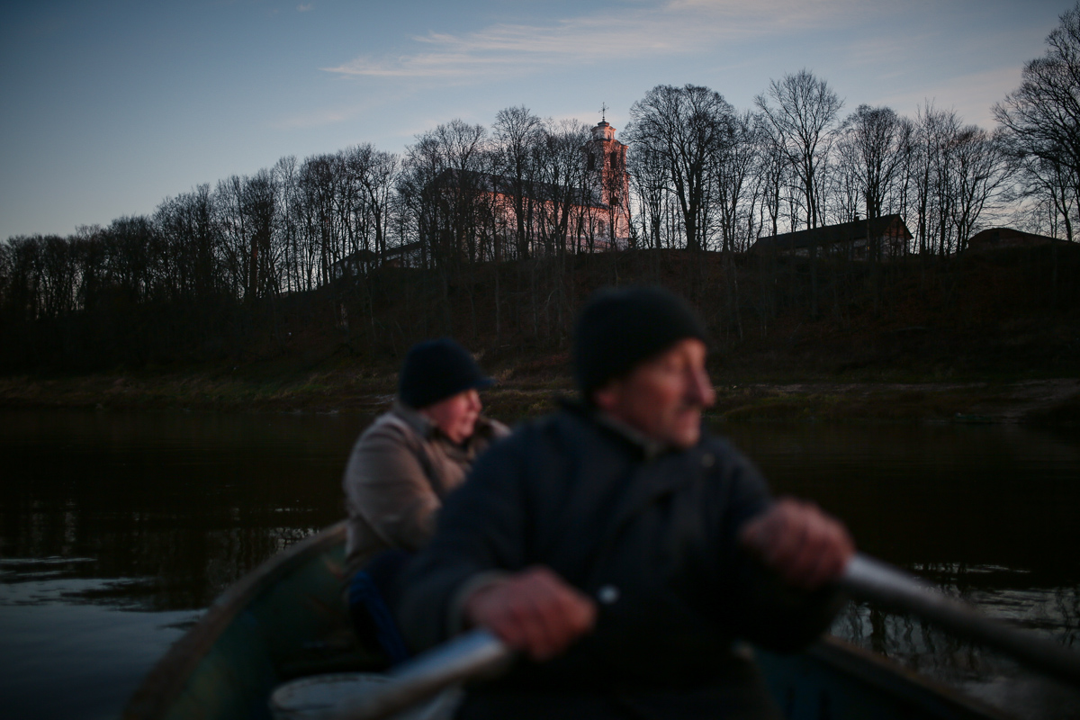 … Auf der Insel angekommen, haben sie ihre Kühe gemolken und tragen im Dunkeln vor Tagesanbruch die Milch davon / Foto © Siarhei Hudzilin