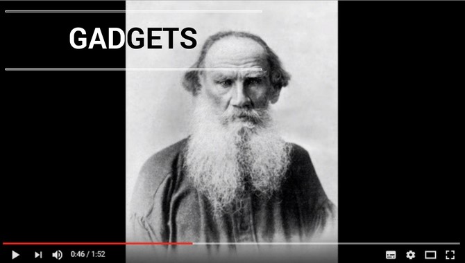 Am 9. Dezember 1903 kamen mein Vater und ich nach Jasnaja Poljana und brachten, gemäß W. W. Stassows Bitte, ein Grammophon mit. Das war damals noch eine echte Kuriosität und Lew Nikolajewitsch hatte so etwas noch nie gehört. […] Am Abend versammelten sich alle Hausbewohner inklusive Lew Nikolajewitsch im Salon. Das Grammophon mit dem riesigen Trichter stellte man auf den Flügel. Mein Vater und ich zogen das Federwerk auf und legten Schallplatten auf. Es wurden Werke von Beethoven, Chopin und Tschaikowski gespielt sowie Opernarien und ein Geigentrio. Alle lauschten der Musik ernst und konzentriert und wunderten sich über die unglaubliche Erfindung, die in der Lage war, die in der Natur vorhandenen Laute wiederzugeben. Lew Nikolajewitsch sagte ab und zu mit Staunen: „Also …“ Dann ertönte das Tanzstück Die Pflasterstraße entlang. Der Chor sang keck: „Ein junges Mädel lief die Pflasterstraße entlang, lief kühles Quellenwasser holen …“ „Also!“, sagte Lew Nikolajewitsch laut. „Also!“, wiederholte er begeistert. Dann lächelte er und schüttelte den Kopf. Sein rechtes Bein zuckte, seine Augen leuchteten. „Na, so was! Aber echt!“ – sagte er angetan. Sein rechtes Bein zuckte wieder, sein linkes auch.