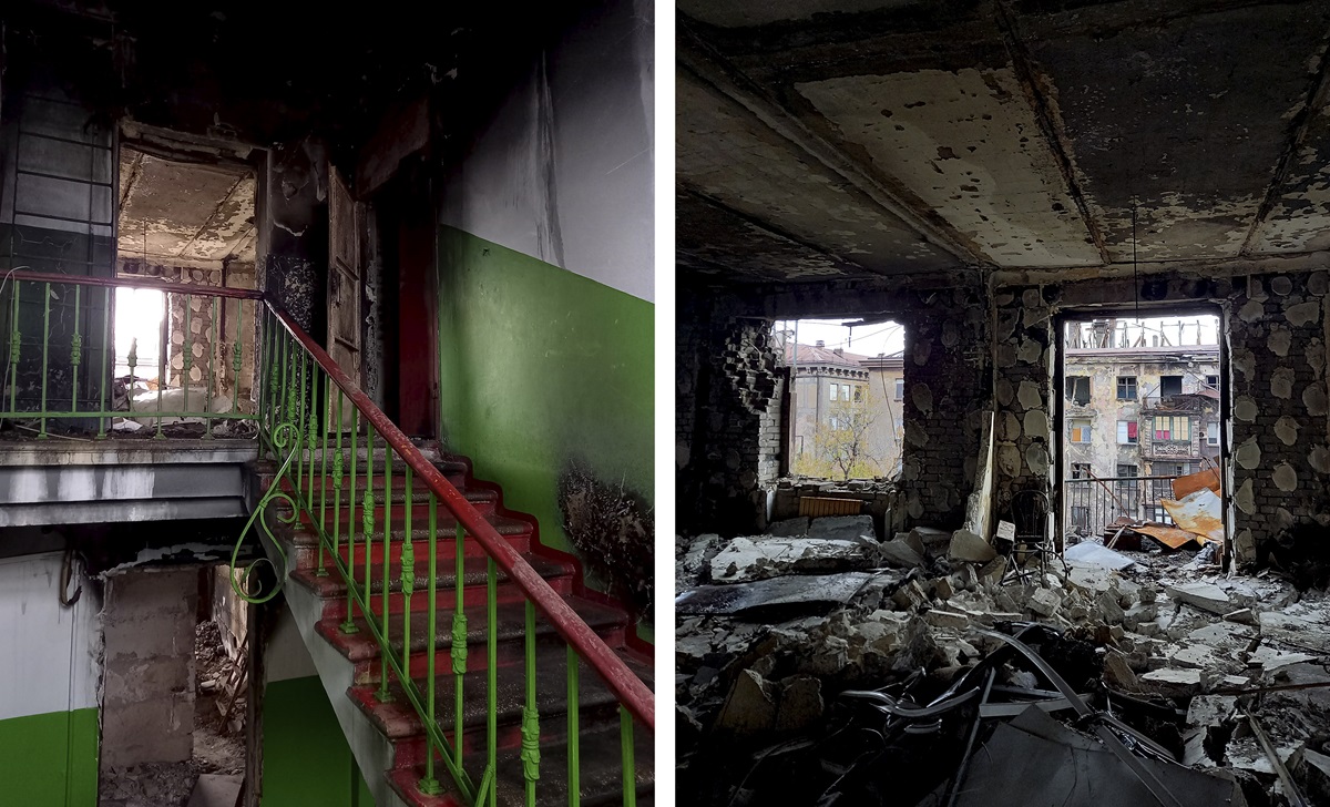 „Ein fünfstöckiges Haus auf einer Anhöhe in der Nähe der Stadtverwaltung“, erinnert sie sich an ihr früheres Zuhause. „Alle Häuser in der Nähe wurden sofort zerstört, zurück blieben nur Ruinen. Aber unser Haus blieb wie durch ein Wunder unbeschadet, bis auf die zerplitterten Fenster natürlich.“