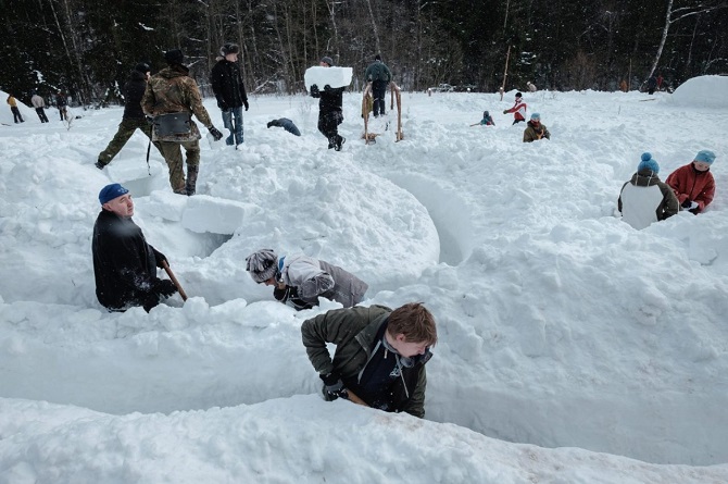 Sie sägen Blöcke aus Schnee, bauen eine Festung daraus und stürmen sie. Die Bakschewsche Masljaniza ist ein großes Fest an geheimem Ort, organisiert von Freiwilligen. Und am Ende verbrennt der Winter. Wirklich. Pawel Nikulin war für Takie Dela dabei.