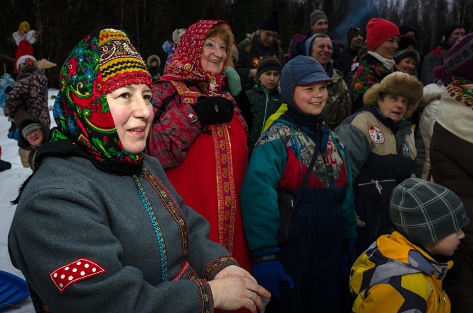 Natalja Charpalewa, ein aktives Mitglied von Roshdestwenka erzählt, die erste Masljaniza sei noch in den Achtzigern von ein paar Ausflüglern veranstaltet worden. Enthusiasten, die sich im Sommer mit der Restaurierung von Klosteranlagen beschäftigten, hätten die ersten Masljazina-Feste im kleinen Kreis gefeiert und Mal für Mal mehr Folklore-Elemente hinzugefügt. Von den KSP-Anhängern hätte man beispielsweise die Butter-Abzeichen übernommen – die jährlich wechselnden Aufnäher für die Masljaniza-Teilnehmer.