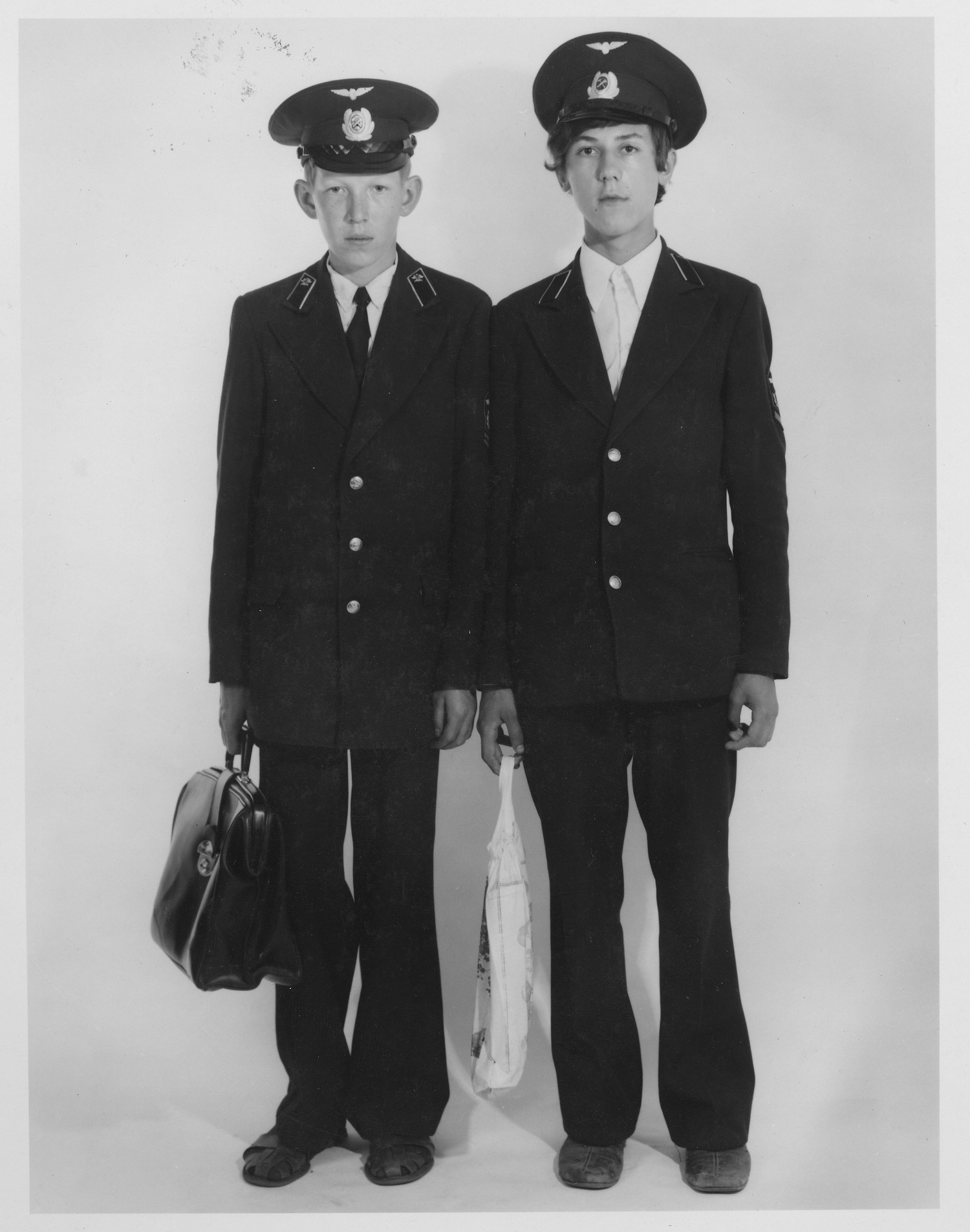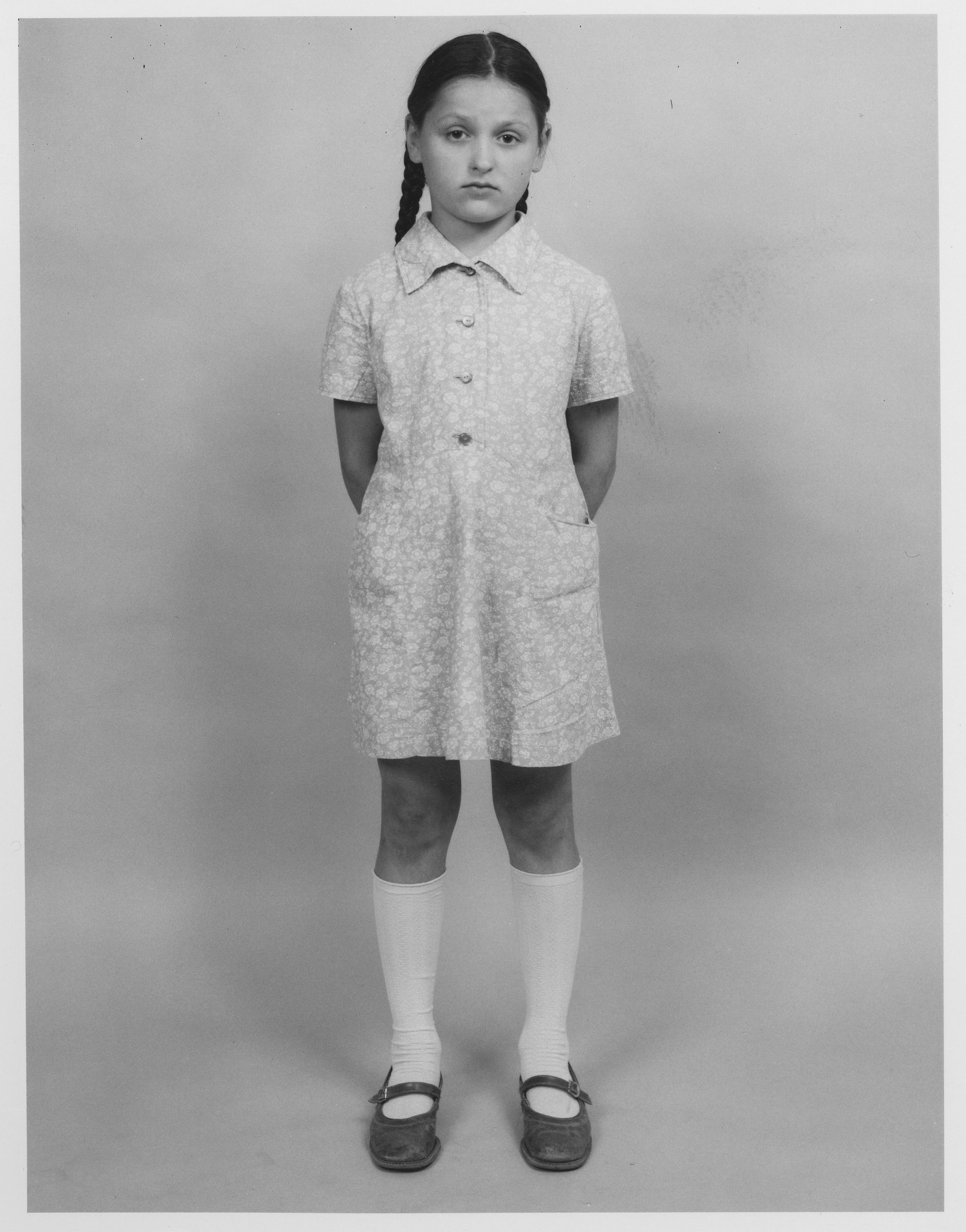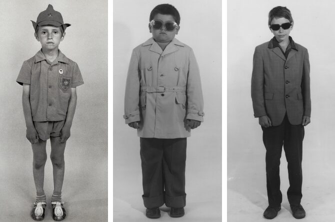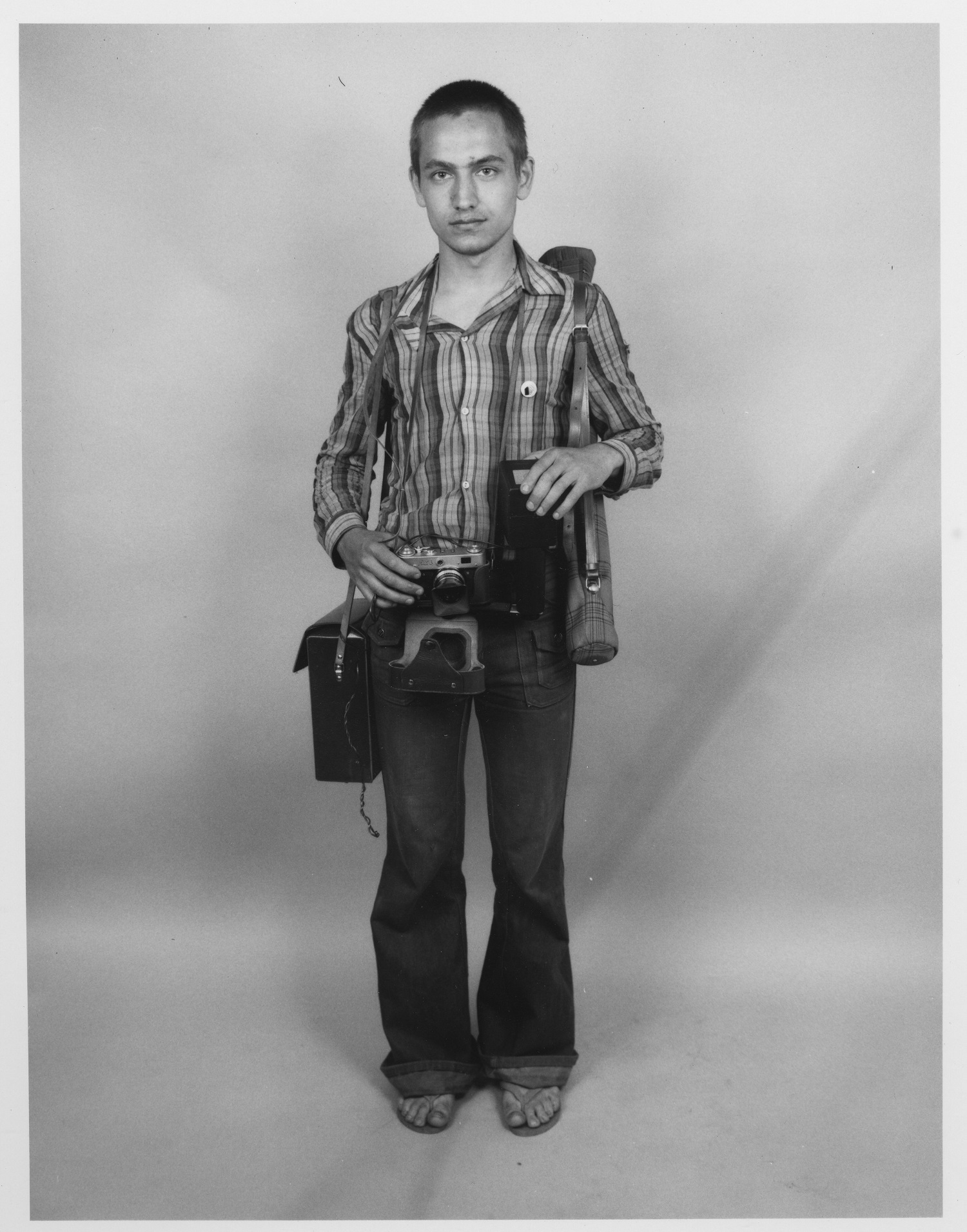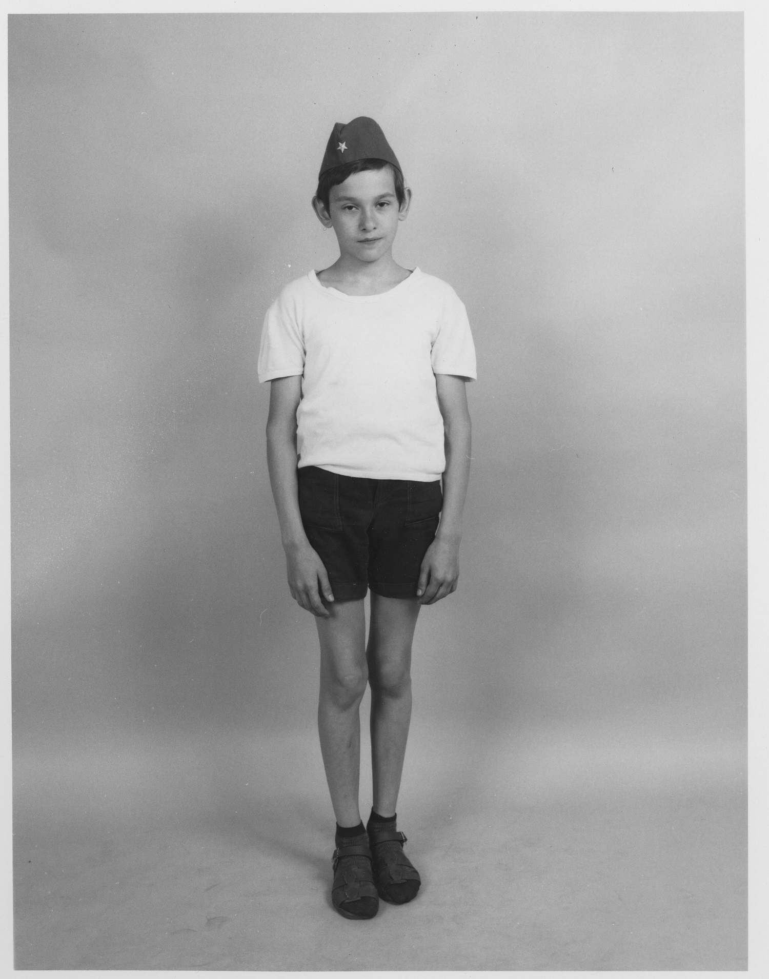 Nehmen wir zum Beispiel den Jungen mit der Sonnenbrille und dem langen Mantel. Das ist ein sehr interessanter Fall. Er sah vollkommen gewöhnlich aus. In den USA würde man sagen, das ist ein Junge, der nur Weißbrot isst. Ich meine so Industriebrot. Seine Mutter stand jeden Tag lange dort an und winkte mir zu: „Bitte fotografieren Sie meinen Jungen!“ Eine Woche stand sie so da, vielleicht sogar zehn Tage. Am Ende willigte ich ein. Da zieht sie ihm plötzlich ihren Mantel an und setzt ihm ihre Sonnenbrille auf. Keine Ahnung, warum! Später hat sich gezeigt, dass sich viele genau so einen [typischen] sowjetischen Jungen vorstellen. Sie hat mir diese Aufnahme quasi geschenkt.