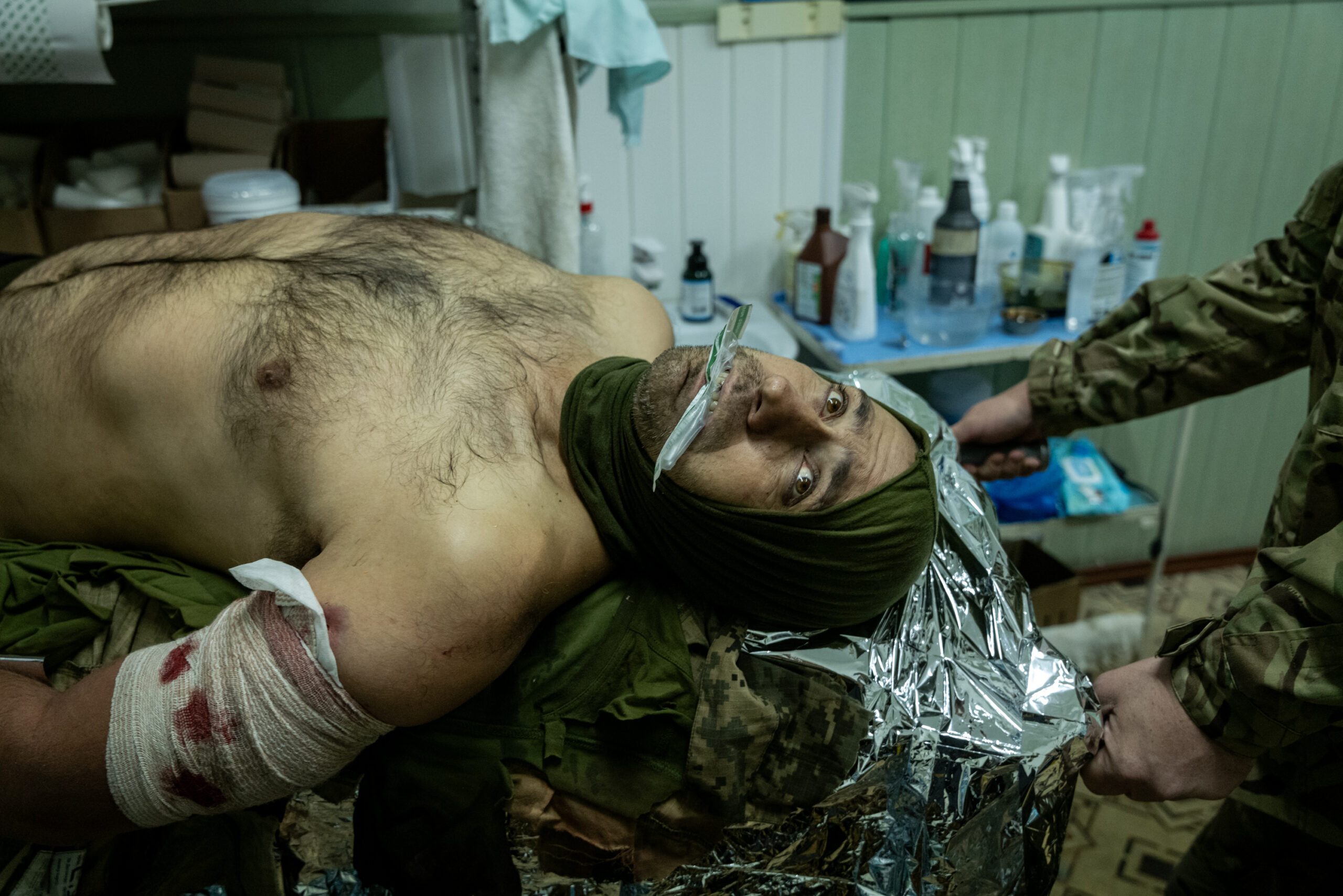 Die Lage ist sehr ernst. Die Ukrainer verlieren stetig an Boden. Als ich den Versorgungspunkt zum ersten Mal besuchte, befand er sich im zweiten Stockwerk eines Gebäudes in Kurachowe. Beim nächsten Besuch war er in den ersten Stock verlegt worden, weil bereits Gleitbomben in die Stadt flogen. Als ich dieses Foto aufnahm, war die Front nur noch zehn Kilometer oder weniger entfernt. Erkundungsdrohnen kreisten über der Stadt und wir konnten hören, wie die Ukrainer Mörser abfeuerten. Zwei Wochen später musste das Lazarett in einen anderen Ort verlegt werden, weiter weg von der Front.