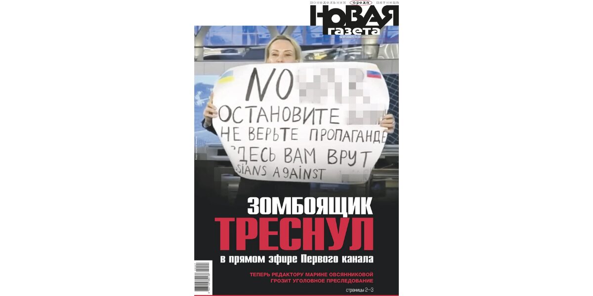 Marina Owsjannikowa hatte als Redakteurin des Staatssenders Erster Kanal während der Nachrichten ein Plakat hochgehalten – „Kein Krieg“ (das Wort zeigt die Novaya entsprechend der neuen Gesetzgebung nur verpixelt) und „Glaubt nicht der Propaganda – hier werdet ihr belogen“. Nach einer Geldstrafe droht ihr nun ein Strafverfahren – in den Sozialen Medien wird sie als Heldin gefeiert. Und Zombiekiste: Das ist ein anderes Wort für den Fernseher mitsamt den Staatskanälen.