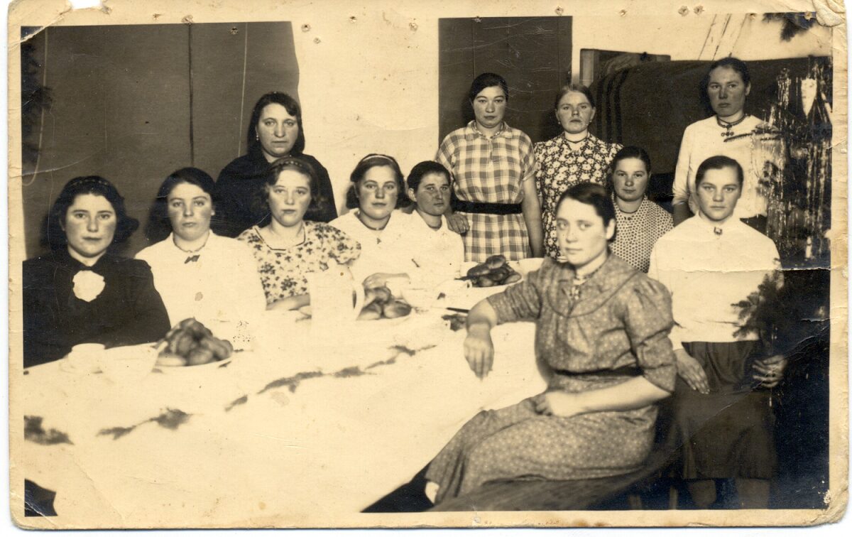In der Beschreibung zum Foto erwähnt Maria, dass die Haushälterin ihnen Kuchen zur Neujahrsfeier geschenkt hatte. Die durchschnittliche Verpflegung der Zwangsarbeiter bestand aus Steckrübensuppe zweimal am Tag und 200 Gramm Brot mit verschiedenen Beimischungen. Den meisten dokumentierten Erinnerungen ist gemeinsam, dass die Menschen ständig Hunger hatten und Kartoffelschalen aus Küchenabfällen gestohlen haben. (Irina Schtscherbakowa)