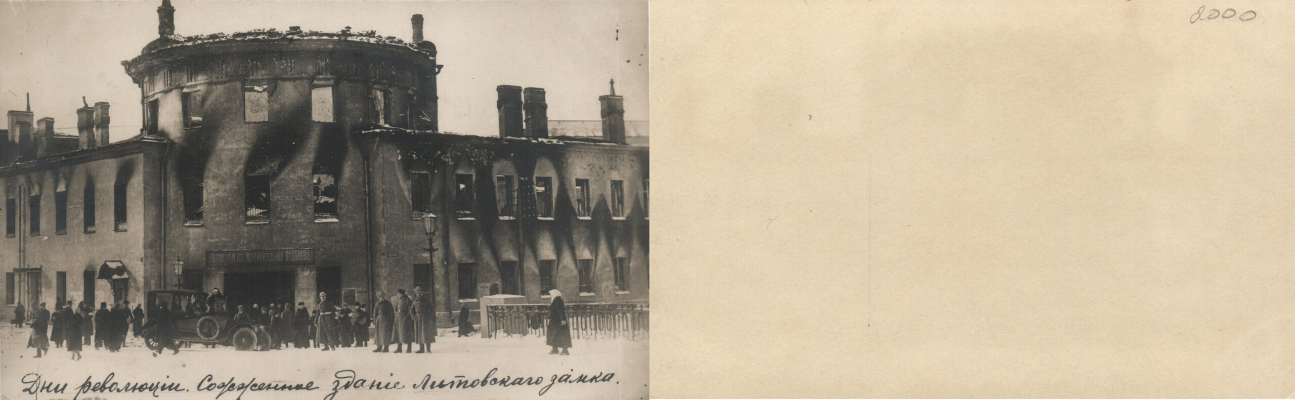 Die Februarrevolution erscheint auf den Karten als Volksaufstand mit Menschenmassen in den Straßen Petrograds und abgebrannten Gebäuden in Moskau. Nach der Februarrevolution waren die Opfer und ihre Begräbnisse eines der ersten Motive der politischen Fotografie der neuen Machthaber. Allein anhand der Begräbnispostkarten ließe sich eine Chronologie der Ereignisse erstellen.