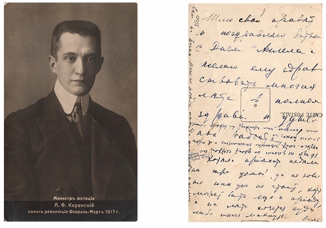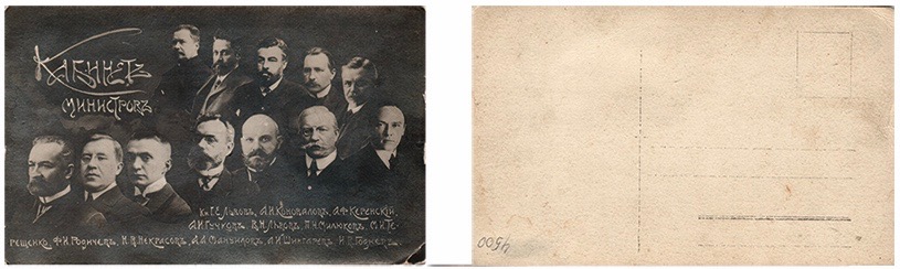 1917 erscheinen dennoch mehrere Postkarten mit Porträts der Regierungsmitglieder. Bald konzentrieren sich die Postkartenhersteller auf die charismatische Persönlichkeit Kerenskis.