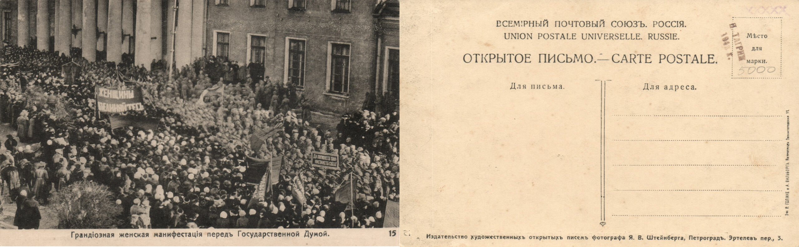 Viele wichtige Ereignisse der russischen Geschichte Anfang des 20. Jahrhunderts wurden von fotografischen wie auch grafischen Postkarten begleitet. Die Revolution von 1905, der Erste Weltkrieg und natürlich die revolutionären Ereignisse von 1917 wurden zu Postkartenmotiven. Der Informationshunger war so groß, dass sich damit viel Geld verdienen ließ. Das nutzten verschiedene revolutionäre Gruppen für ihre Finanzierung.