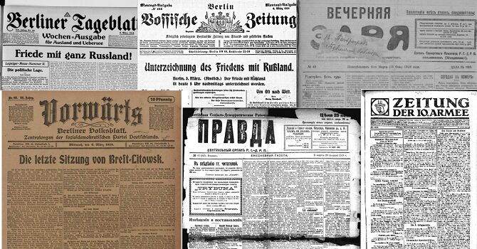 Zum 100. Jahrestag des Friedensvertrags von Brest-Litowsk bringt dekoder in Kooperation mit dem Institut für Geschichtswissenschaften an der Humboldt-Universität zu Berlin historische Debatten-Ausschnitte: Kontroverse Meinungsstücke, die in russischen und deutschen Medien in den ersten Tage nach der Vertragsunterzeichnung erschienen sind.