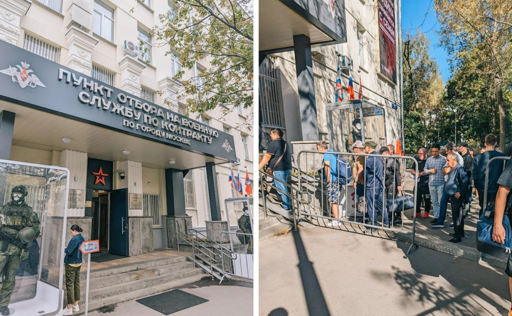 In Moskau bekommen Vertragssoldaten fast zwei Millionen Rubel (etwa 18.300 Euro), wenn sie einen Vertrag mit dem Verteidigungsministerium unterschreiben. Seit dem Sommer stehen im Butyrski-Rayon der Hauptstadt Männer im Alter von 18 bis 65 Schlange. Sie kommen aus ganz Russland, um sich zum Krieg zu melden. Frauen sind auch dabei.