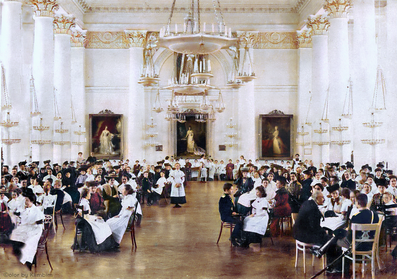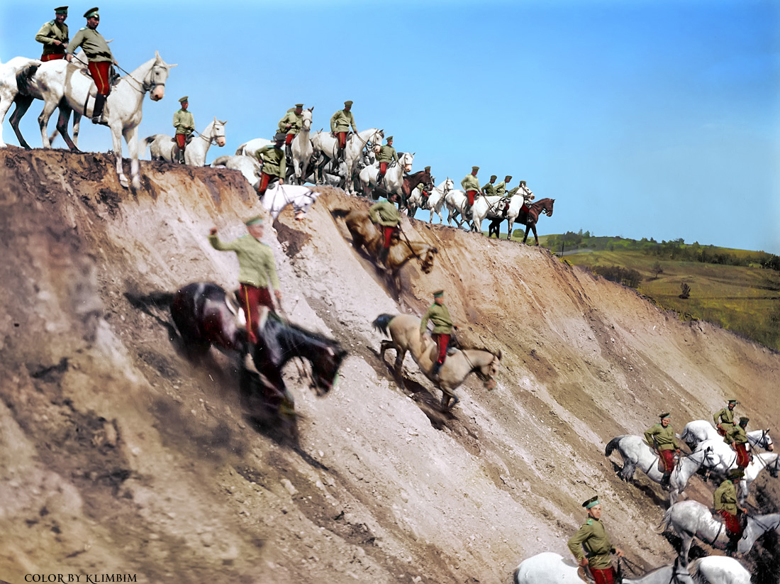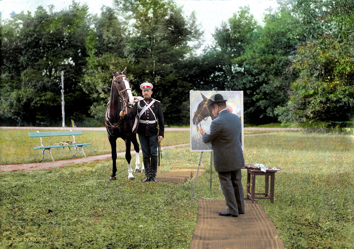 Prinz Jussupow, Graf Sumarokow-Elston posiert dem Künstler Walentin Serow für ein Porträt mit einem Araber, 1909Großherzoginnen Maria und Olga Romanowa, 1912Kavallerie, Kosaken, Russische Armee, 1912Bildungsinstitut für adlige Mädchen, Irkutsk, 1912 Iwan Pawlow (1849–1936), russischer Physiologe. Pawlow (Mitte, mit Bart) mit Assistenten und Studenten an der Kaiserlichen Militärmedizinischen Akademie in Sankt Petersburg, vor einer Demonstration seines Experiments an einem Hund, 1912–14 11. September 1913: Beim 3. Militärflugzeugwettbewerb fiel der Motor der fliegenden Meller-II aus etwa 50 Meter Höhe auf den unten geparkten Doppeldecker Russki Witjas (dt. Russischer Ritter). Es war das einzige Exemplar dieses historischen Flugzeugs. Flugzeugbauer Igor Sikorski hat es nach dem Unfall nie wieder aufgebaut (damals befand sich schon das Flugzeug Ilja Muromez im Bau). Bei der Meller-II wurde die Tragflächenkosntruktion nicht zerstört, dem Piloten gelang eine sichere Landung. Der Mann auf der linken Seite ist Adam Gaber-Wlynski – Pilot der Meller-II; in der Mitte Igor Sikorski – Konstrukteur des Russki Witjaz Professor Wladimir Makowski im Malerei-Atelier der russischen Akademie der Künste, Sankt Petersburg, 1913 Flugzeugbeschuss während des Ersten Weltkriegs, 14. Juli 1916 Zar Nikolaus II., 28./29. Juli 1916 Ankunft des Zaren Nikolaus II. am Standort der 1. Armee, geführt von Oberbefehlshaber General Alexander Litwinow, 30. Januar 1916, Bezirk Dwinsk Wladimir Iljitsch Lenin während des Russischen Bürgerkriegs bei der Parade der Wsewobutsch-Truppen in Moskau am 25. Mai 1919 Priester Solodkow, der Schiffsarzt und die Katze an Deck der Kagul in Bizerta (Tunesien), 1921 Anatoli Lunatscharski mit seiner Frau Moskau, Sucharew Turm, 1931 Die ersten Fahrgäste der Moskauer Metro, 1935 Marine-Aufklärer der Nordflotte 1942 unter dem Kommando des Unterleutnants Petrow / Jewgeni Chaldei Leningrad im Zweiten Weltkrieg 1944, Zuschauer des Leningrader Gorki-Theaters Sewastopol im Zweiten Weltkrieg, Panzer der Roten Armee, 1944 / Jewgeni Chaldei 9. Mai 1945 in Moskau: Der Tag des Sieges