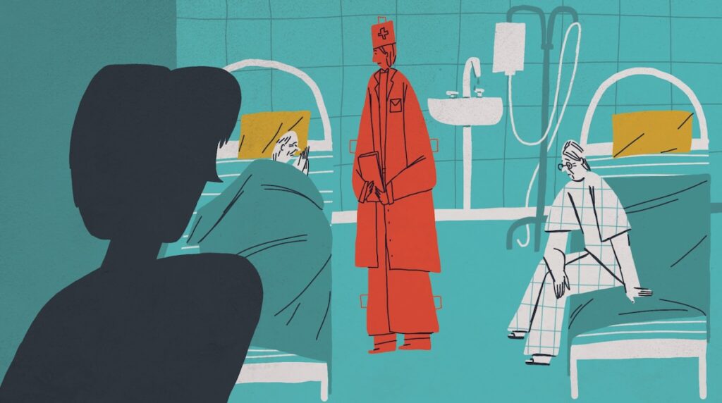 Sie teilten mich in ein Hospital ein, das nennt sich „Krankenhausdienst“. Die ersten zehn Tage arbeitete ich in der Neurochirurgie. Schon nach ein paar Tagen zeigte man mir, wie man intravenöse Injektionen verabreicht. Es gab nicht genug Personal, also wurden wir für alle Fälle geschult. Es war hart, viele Freiwillige gaben diese Arbeit schnell auf, wurden ohnmächtig und fuhren vorzeitig nach Hause. Ich war die Jüngste, aber irgendwie habe ich alles überstanden.