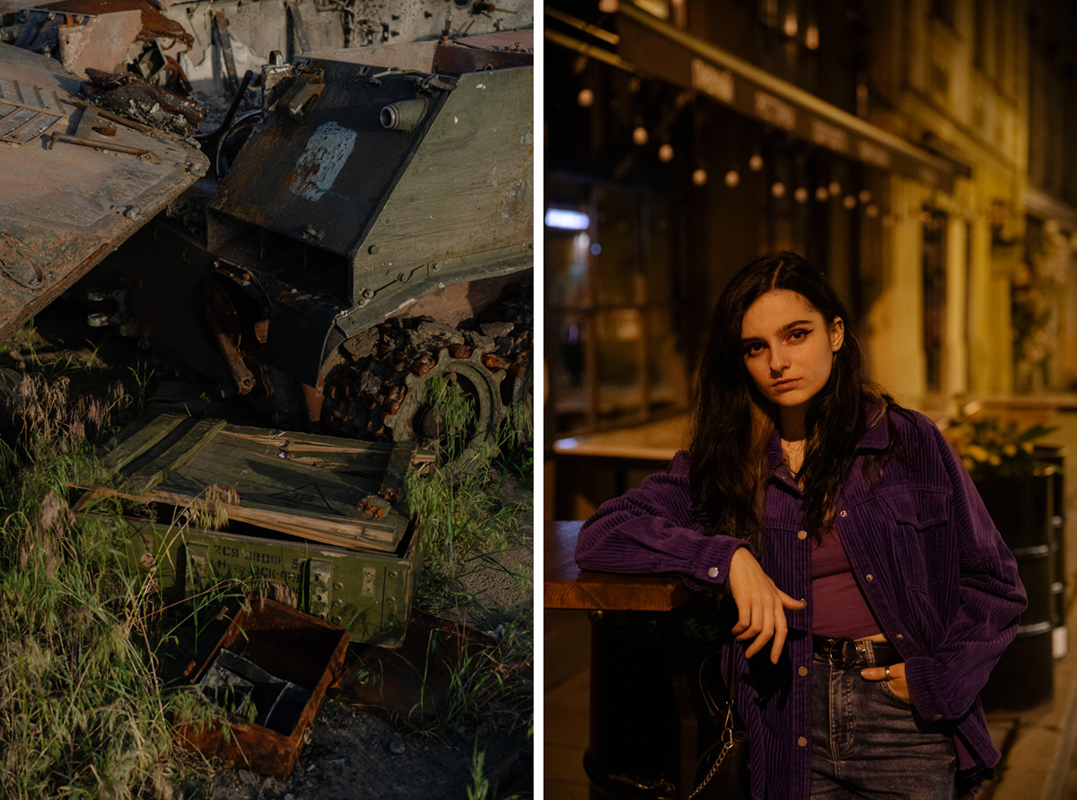 Rechts: Oleksandra, 21, kurz vor der Ausgangssperre in Lwiw/Ukraine, Juni 2022