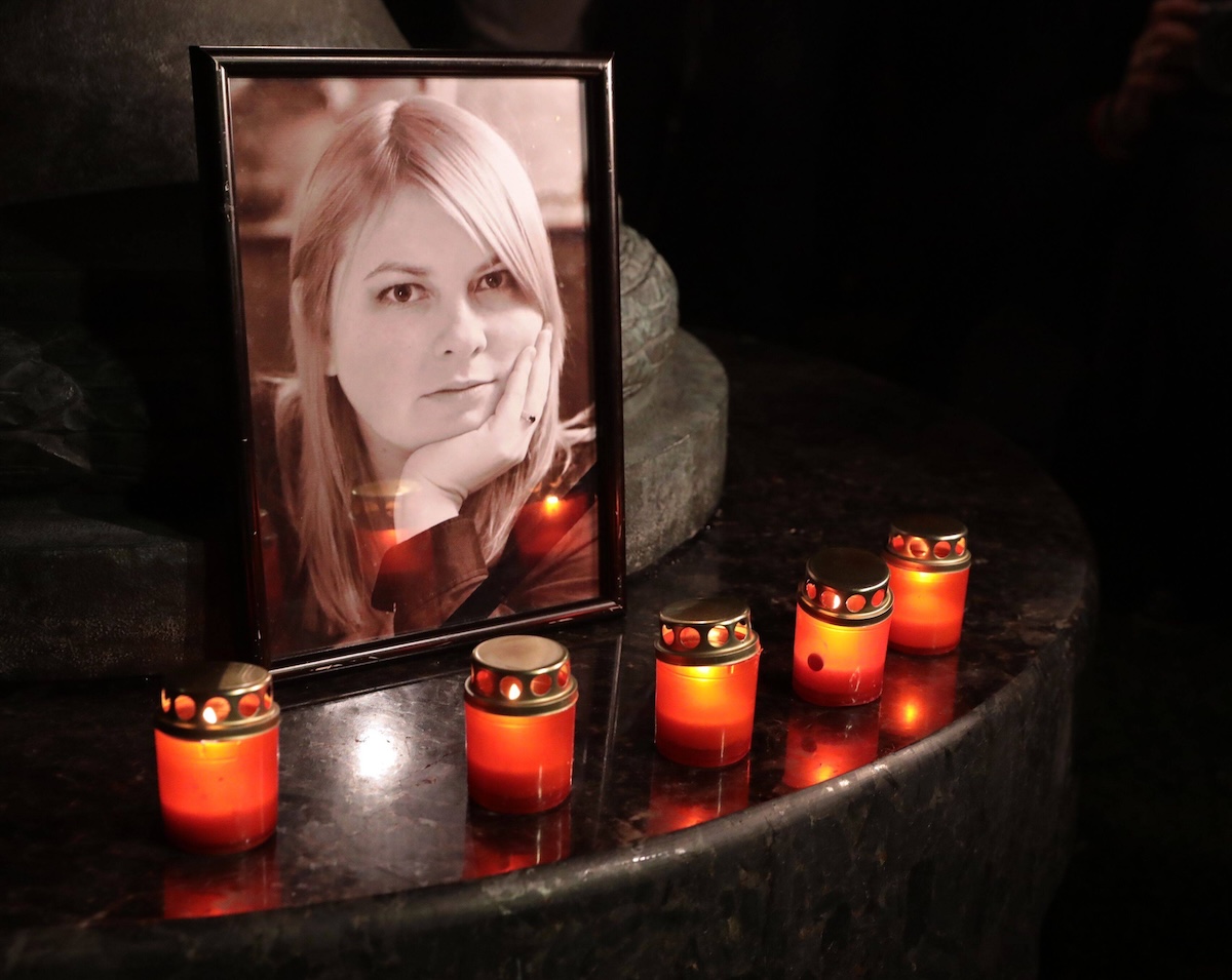 Journalisten in T-Shirts mit Handsjuk-Porträt fragten bei Pressekonferenzen der Regierung und Ermittlungsbehörden und jeder Gelegenheit auch den Präsidenten: „Wer hat den Mord an Kateryna Handsjuk bestellt?“