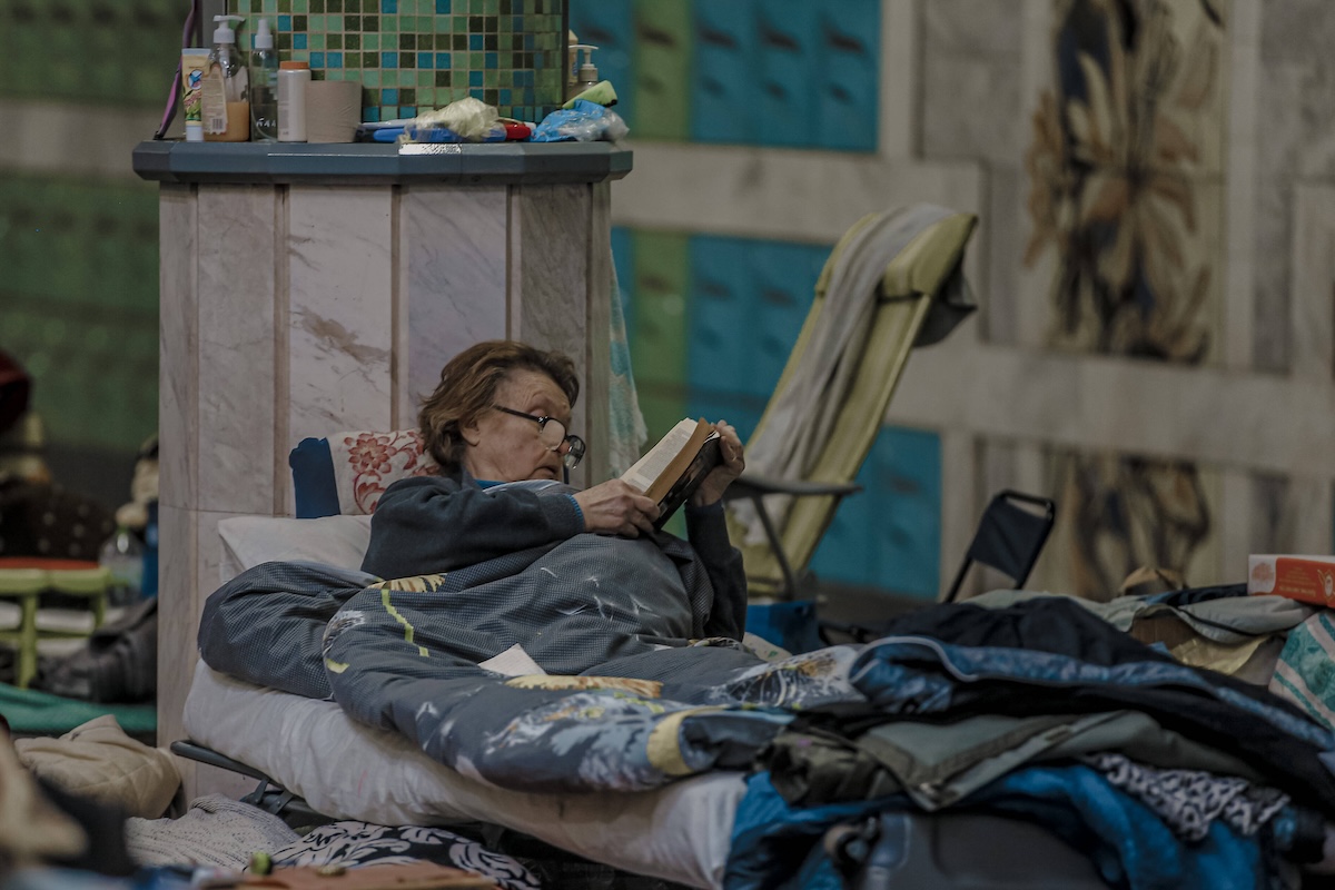 Mai 2022: Während die russische Armee mit Luftangriffen und Bodenoffensiven versucht, Charkiw zu besetzen, wird in der als Schutzraum nutzbaren städtischen Metro gelesen. / Foto © Aziz Karimov/IMAGO/ZUMA Press Wire