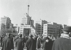 In der Nachkriegszeit entwickelte sich Charkiw zu einem Labor sowjetischer Sprachassimilierung. Das Ukrainische verlief sich nach und nach im Russischen, aber das bedeutete nicht, dass es völlig verschwand. Im Gegenteil: Das Ukrainische überlebte in Zwischenräumen, an der Peripherie, an unscheinbaren Orten – etwa in Familien, die verbotene Bücher aufbewahrten, in Lesezirkeln, die verbotene Texte – auf der Schreibmaschine mit Pauspapier vervielfältigt – lasen, in Studentenküchen, in denen die Sprache zur Möglichkeit wurde, aus der sowjetischen Schablone auszubrechen. Das Ukrainische existierte still, angespannt und oft namenlos, jedoch als lebendige, tief verwurzelte Alternative zur offiziellen Sprachlandschaft.