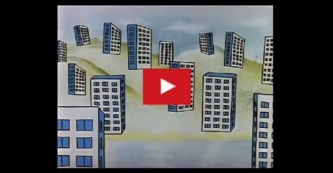 Wie zuvor die Kommunalka in der Literatur als Abbild der sowjetischen Gesellschaft im Kleinen verhandelt worden war, geriet die Auswechselbarkeit der Wohnviertel und Städte zur Metapher. Eindrücklich belegt dies der Film Ironija Sudby (dt. Ironie des Schicksals) von Eldar Rjasanow aus dem Jahr 1975. Im Vorspann parodiert eine Zeichentricksequenz [s. Video unten – dek] die Abkehr vom Ornament und die Gleichschaltung aller Bauten zu „Schachteln“.