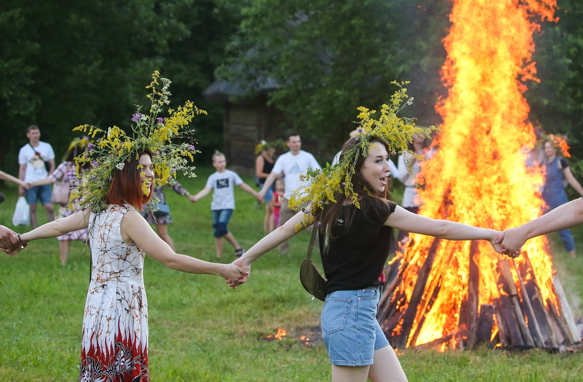 Der längste Tag, hellstrahlende Sonne und die kürzeste Nacht, die nach der Sonnenwende sekündlich und minütlich das Tageslicht wieder schluckt. Dieses augenfällige astronomische Phänomen inspirierte die archaischen Gesellschaften zu einer ganzen Reihe ritueller Handlungen, durchaus durchdacht. In allen, ausnahmslos allen Sonnenkalendern der Welt sind die Sonnenwenden vermerkt. Und die meisten Feiertage des Christentums basieren auf dem Sonnenkalender. Zur Wintersonnenwende, wenn die Tage wieder länger werden, wird die Geburt Jesu Christi gefeiert. Genau ein halbes Jahr später, ungefähr zur Sommersonnenwende, wenn die Tage wieder kürzer werden, feiert man die Geburt von Johannes dem Täufer, der Gottes Sohn mit einem Bad (baden = belaruss. kupazza > Kupalle) im Jordan getauft hat. In der Heiligen Schrift schreibt Johannes der Täufer über sich und Jesus sogar: „Er muss wachsen, ich aber muss abnehmen“ (Johannes 3:30).