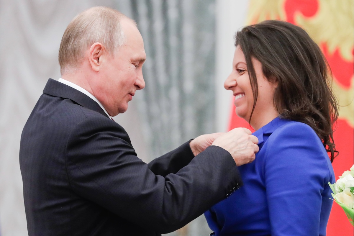 Seit ihrem Aufstieg zu einem der wichtigsten Propagandasprachrohre des Kreml steht auf Simonjans Schreibtisch ein Telefon mit direkter Verbindung in den Kreml.8 Dass ihr Einfluss mit ihrer Loyalität zum Staatsapparat und ihren Kontakten zu wichtigen Personen verflochten ist, weiß sie. Und sie lässt keinen Zweifel daran, für wen sie arbeitet: Obwohl sie de facto an der Spitze ihrer Organisation steht, bezeichnet sie Wladimir Putin als ihren Natschalnik (dt. Kommandeur). „Früher war er einfach nur unser Präsident und man konnte ihn austauschen. Jetzt ist er unser Führer. Und wir lassen nicht zu, dass er ausgetauscht wird. Das habt ihr (der Westen – dek) mit euren eigenen Händen erwirkt”, schrieb Simonjan 2018 in einem Tweet – und benutzt mit Woschd (dt. Führer) einen Begriff, der bis dahin Stalin vorbehalten war.9 Während eines Talkshowauftritts beschrieb sie Putin zudem als „unwiderstehlich“ und „animierend”.10